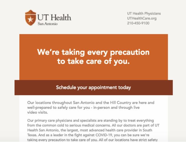 UT Health Physicians has launched a new advertising campaign letting our community know that throughout these uncertain times, UT Health Physicians has remained open for care, safe and true to our promise to make lives better.
